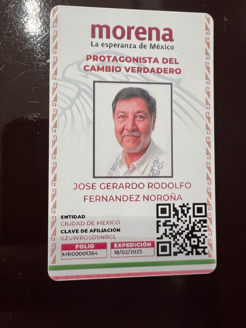 Esta mañana compartió en sus redes fotos de su afiliación posando con su credencial del partido junto a los dirigentes de Morena y los legisladores Adán Augusto López e Ignacio Mier.