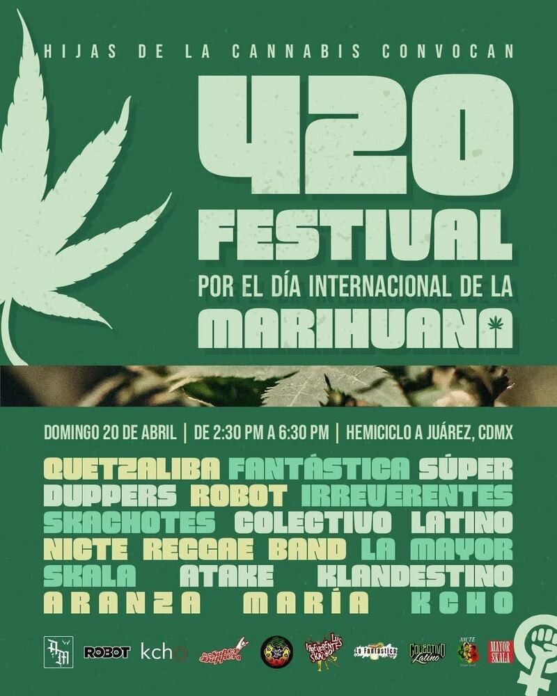 Por ejemplo, Las Hijas del Cannabis invitan al 420 festival de 2:30 hasta las 630 de la tarde en el Hemiciclo a Juárez.